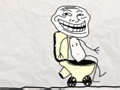 Запусти троллфейс чувака как можно дальше верхом на туалете. Для этого выбери удобный момент когда рисованная стрелка будет показывать максимальную мощь и нажимай выстрел. Далее у тебя есть три возможность дать ускорении чуваку, чем дальше ты заедешь, тем больше получишь денег, за какие сможешь прокачать унитаз.