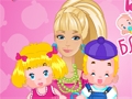 Барби ещё пока не готова стать мамой, но очень хочет этого и для того, чтоб набраться хорошей практики воспитания малышей, она решили устроится няней. Уход на близнецами очень тяжелый и требует особого внимания. Для начала покупай их в ванночке, а дельше следуй указаниям игры