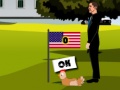 Два кандидата в президенты США решили провести интересные соревнования кто дальше забьет обыкновенную курицу. Значит нажимай мышкой на курицу и она начнет падает, потом сразу же нажимай пробел и персонаж совершит удар ногой.