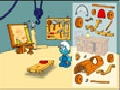 Помоги Смурфику собрать автомобиль. Запчастей очень много, ты выбираете запчасти,а синий гномик тебе обязательно подскажет куда её ставить